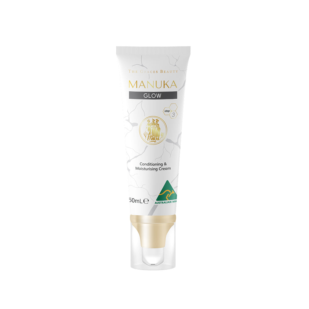 Conditioning & Moisturising CreamExperience the deep moisture protection of Manuka Glow. Revel in the look of rejuvenation and youthful radiance it imparts to your skin. Indulge in the beauty of this extraordinary cream.
